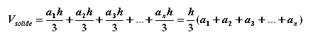 Soit a1, a2, a3, ... , an : les aires des bases triangulaires des différentes pyramides qui constituent le solide. Et soit h leur hauteur.