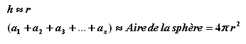 C'est-à-dire que quand h tend vers zéro, les deux sphères se confondent et l'aire de la sphère S1 égale l'aire de la sphère S2 qui égale , ce qui est bien l'aire d'une sphère de rayon r.