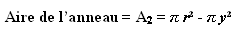 L'aire de l'anneau est la différence entre l'aire du cercle de rayon r (cercle extérieur) et celle du cercle intérieur de rayon y.