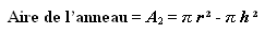 Nous pouvons alors exprimer l'aire de l'anneau comme suit :