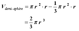 Le volume de la sphère de rayon r sera le double du volume de la demi-sphère, soit :