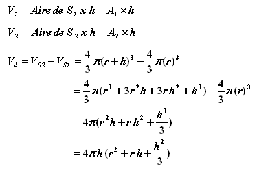 Calculons maintenant les volumes V1, V2 et V4, sachant que R = r + h :