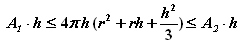 - la petite base a une aire de A1 (la même aire que la sphère S1)